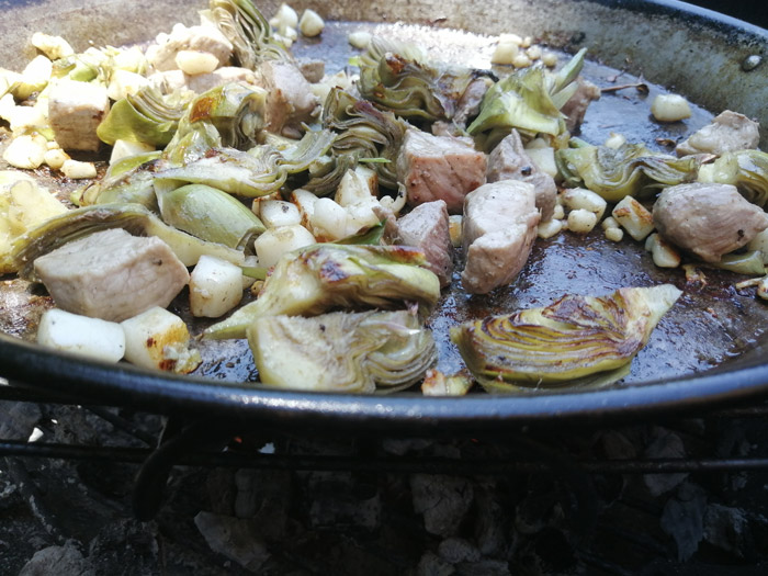 CÓMO PREPARAR UN DELICIOSO ARROZ DE SEPIA, ALCACHOFAS Y MAGRO DE CERDO AL FUEGO DE LA BARBACOA.