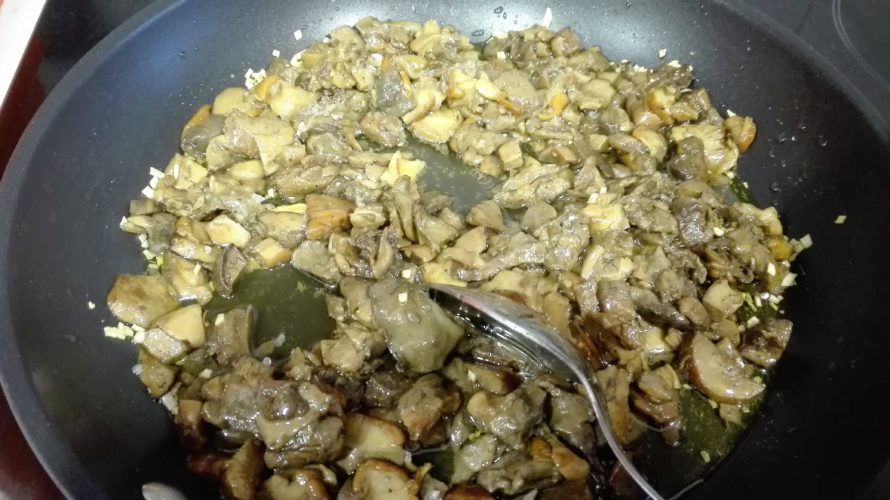 De todas maneras pasados 18 minutos incorporamos los hongos y seguimos cociendo.