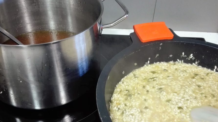 Pasamos directamente al sofrito del risotto: